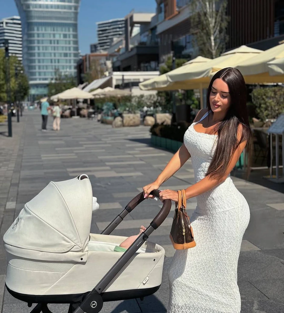 Na jednoj od slika, Tamara je bila u šetnji Beogradom sa naslednikom, dok je na sebi imala belu haljinu pripijenu uz telo koja je savršeno istakla njene obline.