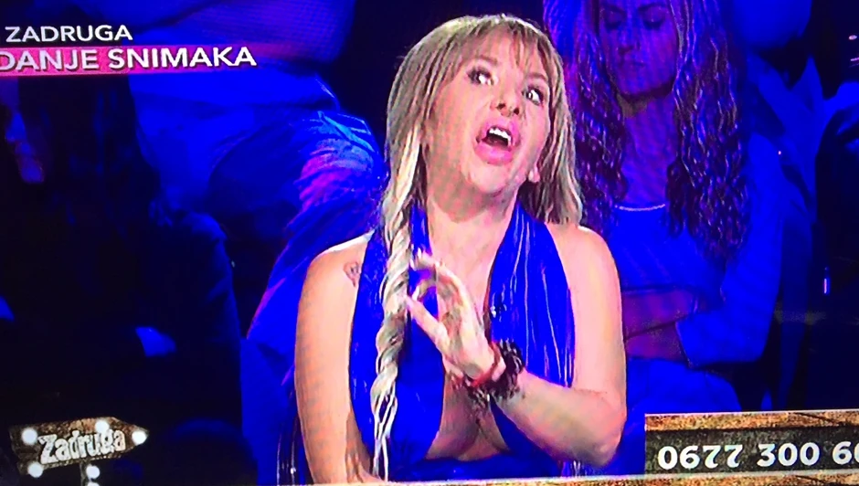 Haljina je imala veliki izrez, na koji bi se malo koja pripadnica lepšeg pola osmelila, a otkrila je da će Sava podržati u svemu što bude radio u "Zadruzi", da bi malo potom i ona ušla u rijaliti.