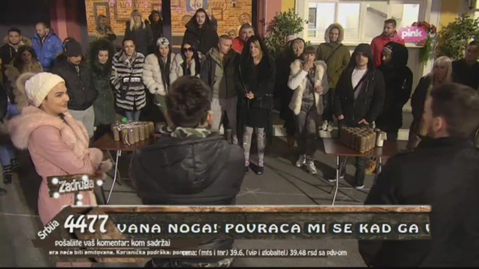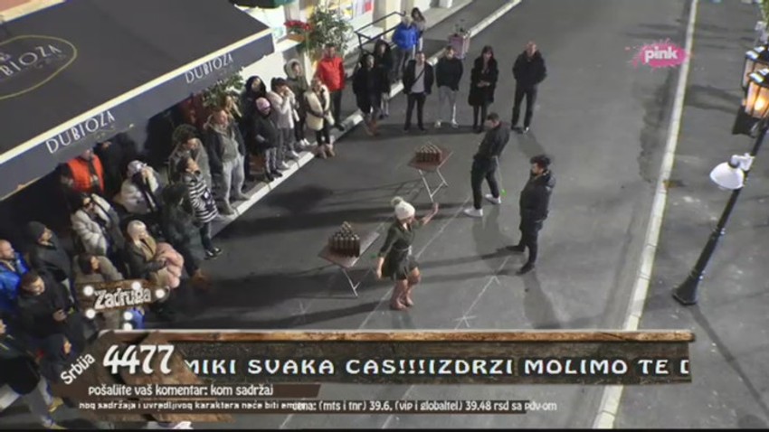 Eleonora Miljković koja je zapala za oko Slobi Radanoviću i Lazar Čolić Zola, dečko Milajne Kulić sinoć su kao i svi takmičari do sada morali da odigraju igricu koja im je duplirala glasove publike. Zadatak je bio da kuglicama obaraju limenke u čemu je bolja bila Eleonora.