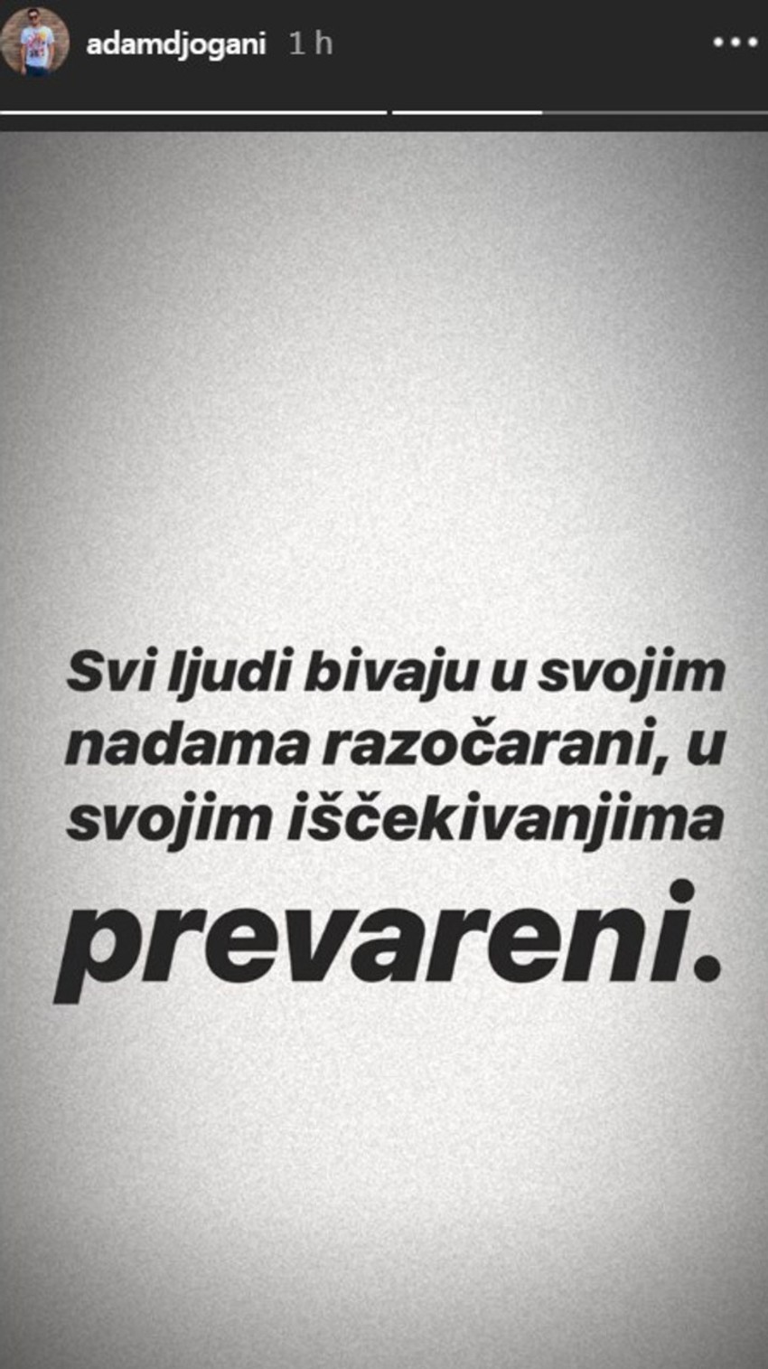 - Od sutra sam novi čovek koji će uživati u novim devojkama i zezati se! Ne treba mi ozbiljna veza, ugušila me je. Sada se ona kaje, ali me ne zanima vise - odlučan je Đogani, koji je nagoveštaj da nešto nije u redu dao i na Instagramu.