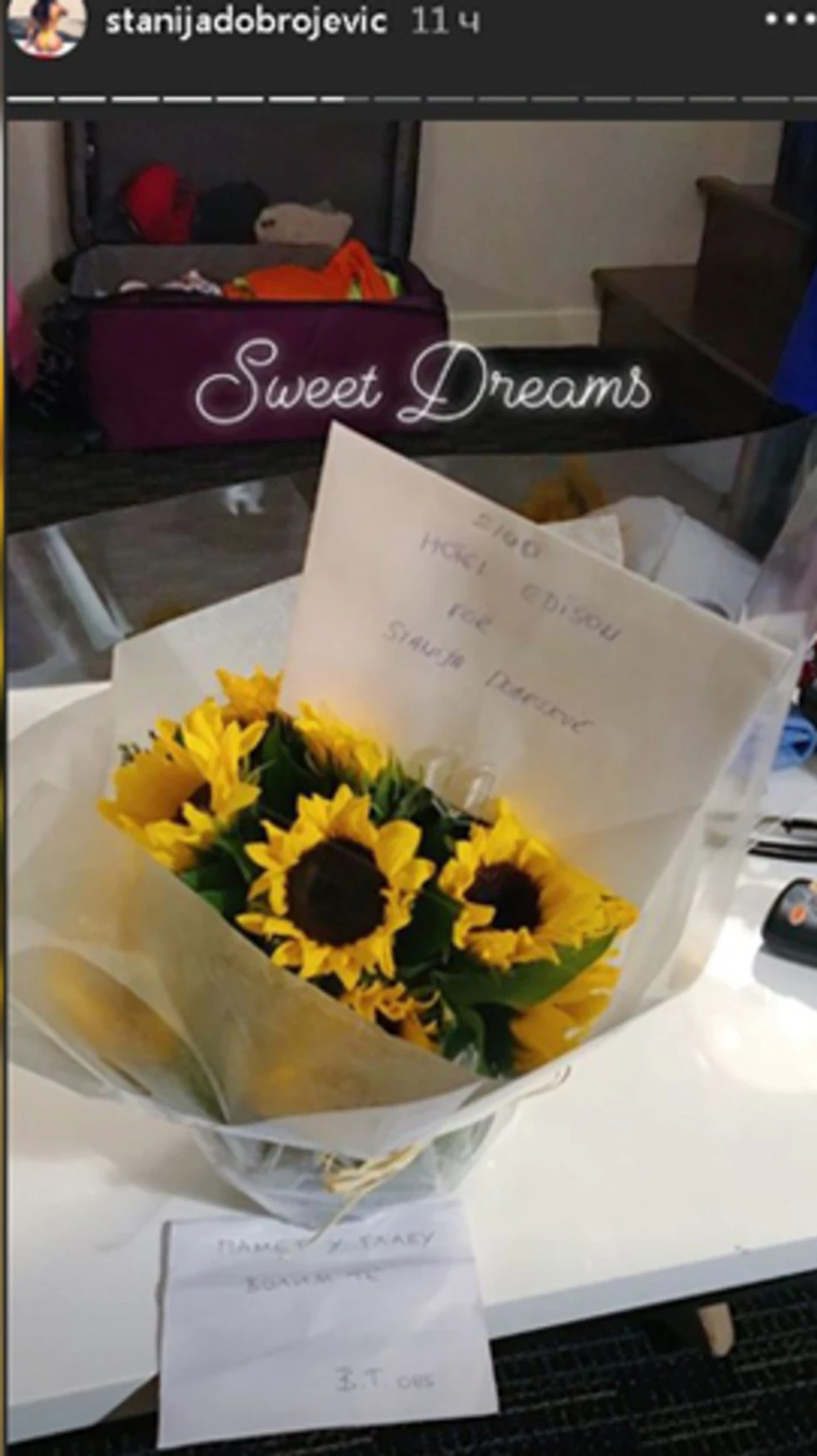 Dobrojevićeva je objavila na društvenoj mreži Instagram da joj je sada stigla jedna ljubavna poruka i buket cveća.