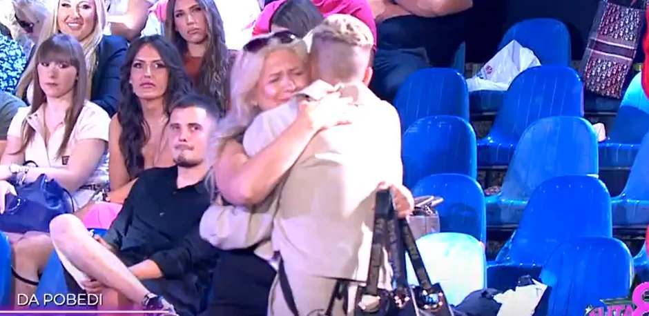 Uroša Stanića je u studiju sačekala majka, a on joj se zaleteo u zagrljaj i počeo da jeca.