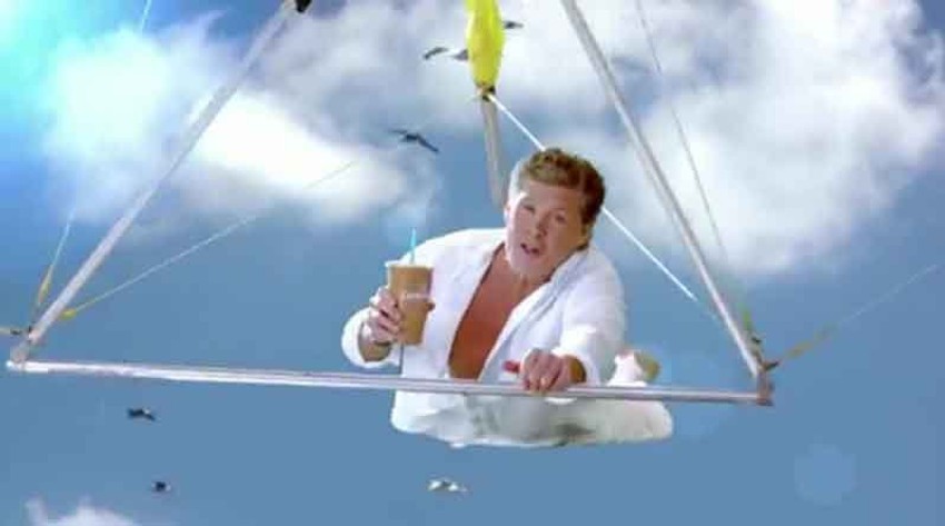 Zvezda "Čuvara plaže" Dejvid Haselhof snimio je reklamu za kafu, u kojoj uživa sa lepoticama na plaži, penje se na vrh stene i navodno leti paraglajderom.