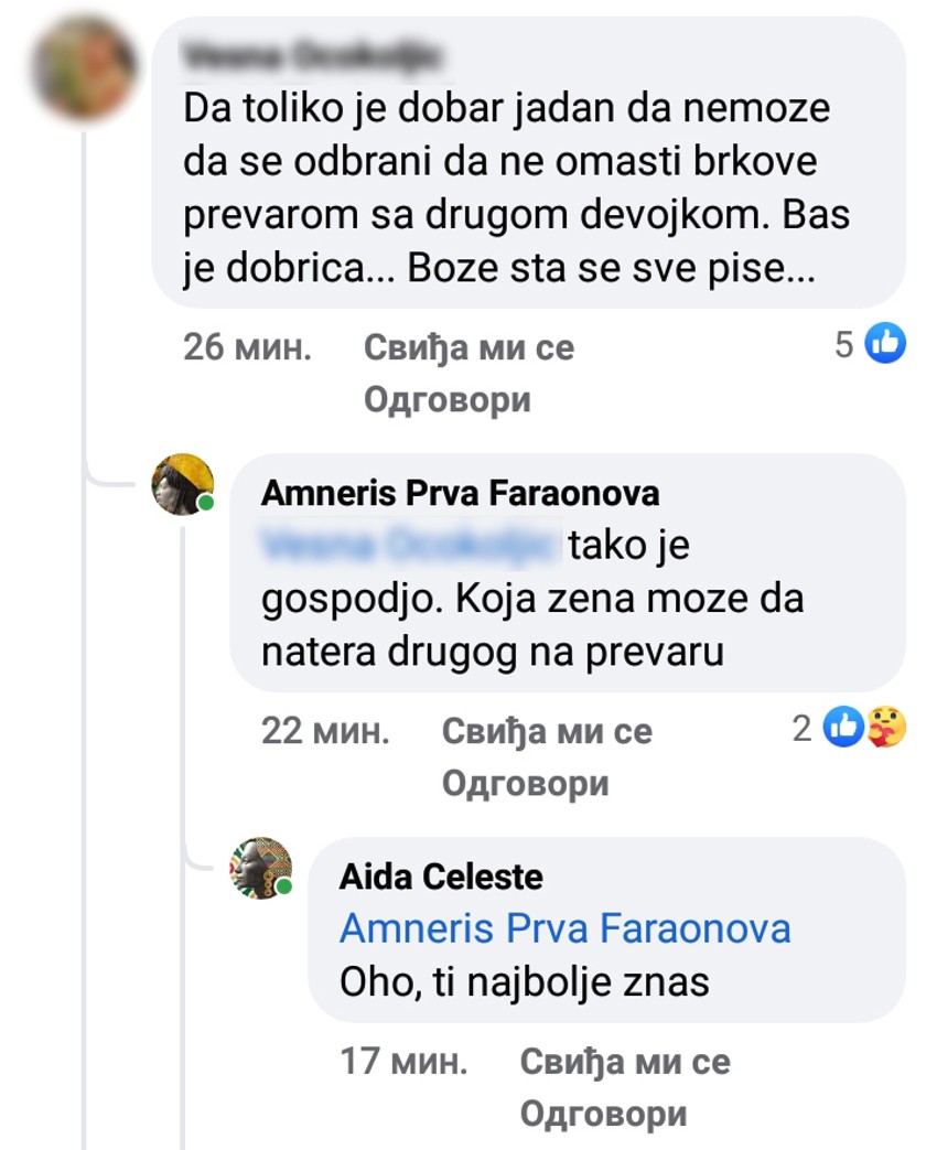 Nakon ovog statusa, oglasila i Amneris, koja je uputila teške reči princezi Aidi.