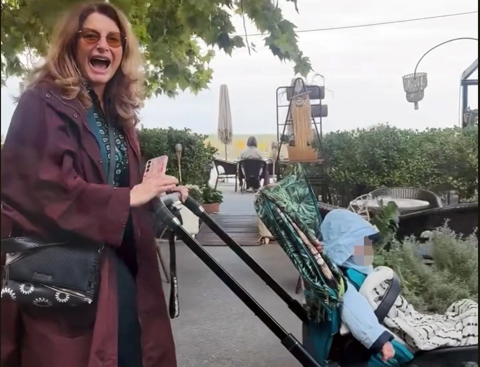 Naime, on je na Instagramu objavio video kako glumica u opuštenom izdanju gura bebu u kolicima i razgovara telefonom.