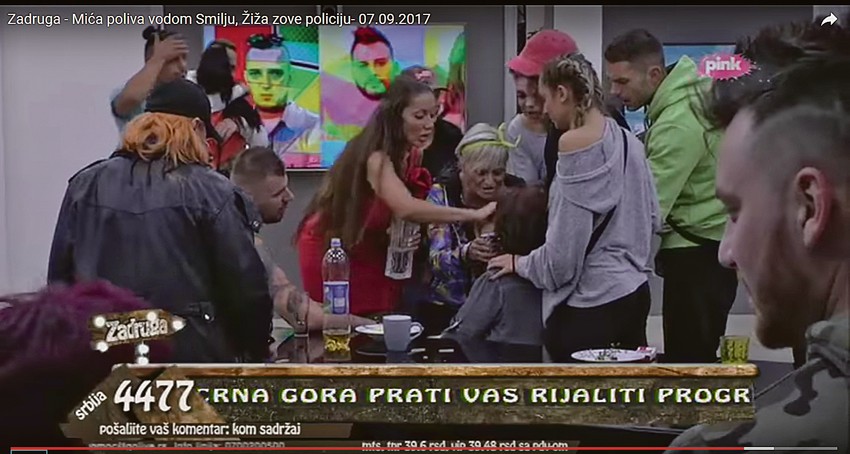 - Policijo! Da li je moguće da ja ovo doživljavam? Ja ovo nikada nisam doživela! On je nju davio! Policijo, molim vas! Ovde se ljudi ubijaju! Pogrešila sam, oprostite mi - jecala je Žiža koju su ostali ukućani smirivali i polivali vodom da dođe sebi.