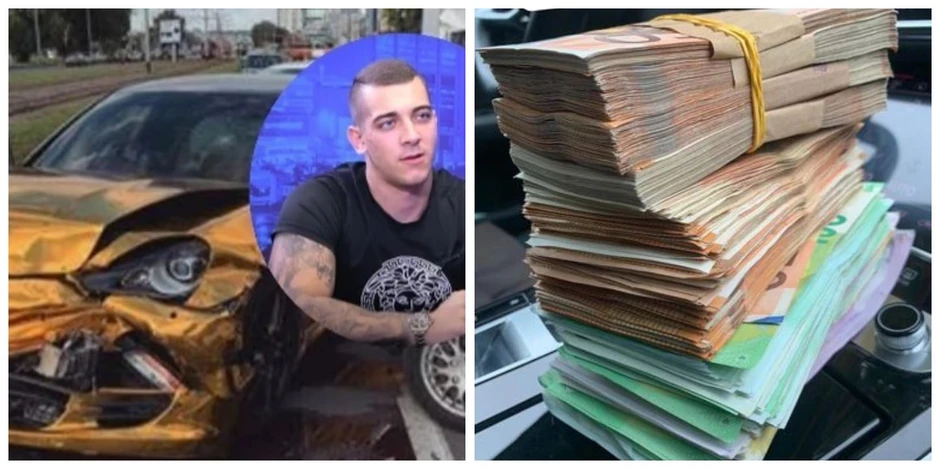 Zlatni "porše panamera", koji je prekjuče slupan u Beogradu, vozi momak po imenu Nikola Keljanović, koji se na Instagramu često hvali skupocenim automobilima i novcem, a koga prati više od 130.000 ljudi na ovoj mreži. Ovaj mlad i bahat momak sve svoje ispade beleži, promovišući raspiništvo i poroke, a sada je putem storija podelio novčanice, kojima se ne zna broj, ali i - glavu krvavu od flaše.