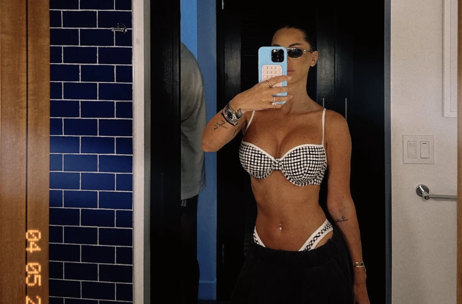 Ona je napravila selfi u kupatilu, a na sebi je imala crno beli bikini koji je savršeno isticao njene obline. Takođe, ono što je mnogima zapalo za oko je njen ravan stomak, ali i pirsing na pupku.