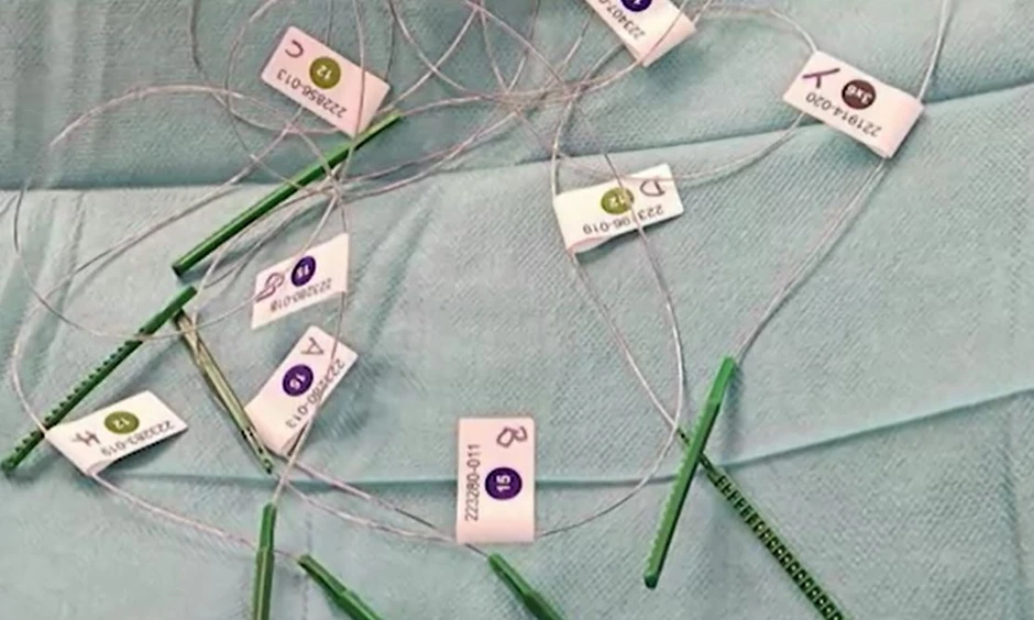 - Ujutru se pacijentkinji postavlja stereotaktični ram, radi se novi skener, implantira se kompletno taj CT u mašinu za navigaciju, Stealt stejšn sistem. Onda se ulazi u salu i uz pomoć stereotaktičnog rama jedna po jedna elektroda se implantira tačno određenom putanjom u određeni deo mozga, apsolutno precizno, da se ne bi oštetio ni jedan krvni sud. Mozak je prožet mrežom krvnih sudova, arterija i vena, i svaka mora da se promaši - naglašava profesor.