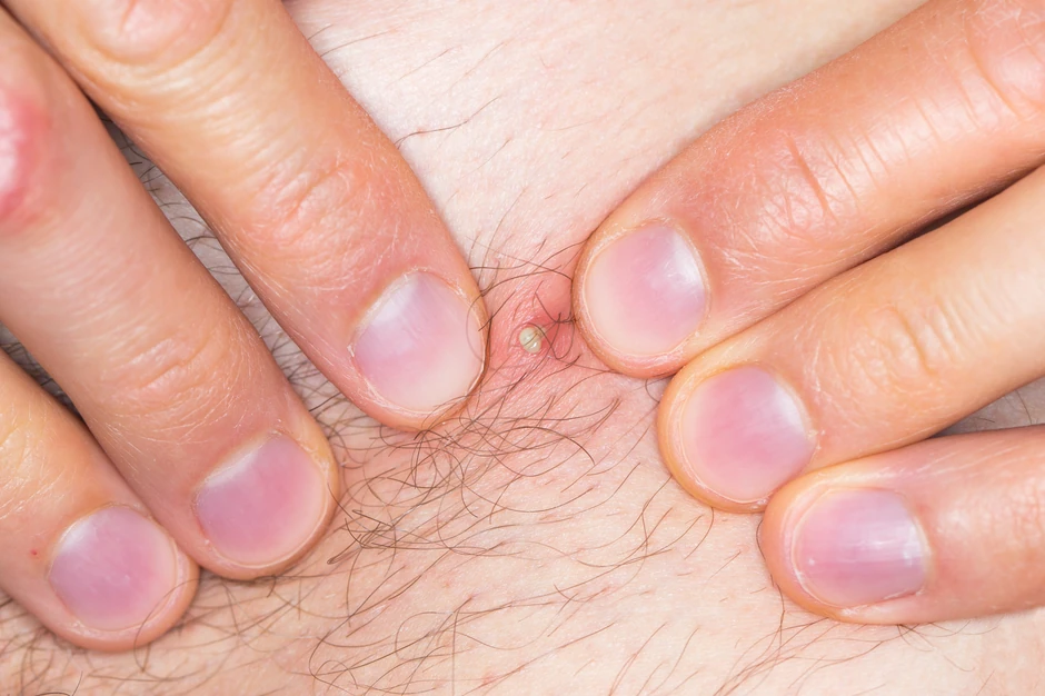 - Pilonidalna cista: Mali džep u koži koji nastaje kada dlaka probije kožu i postane urasla. Uglavnom se javlja na samom vrhu pregiba zadnjice (trtična regija).