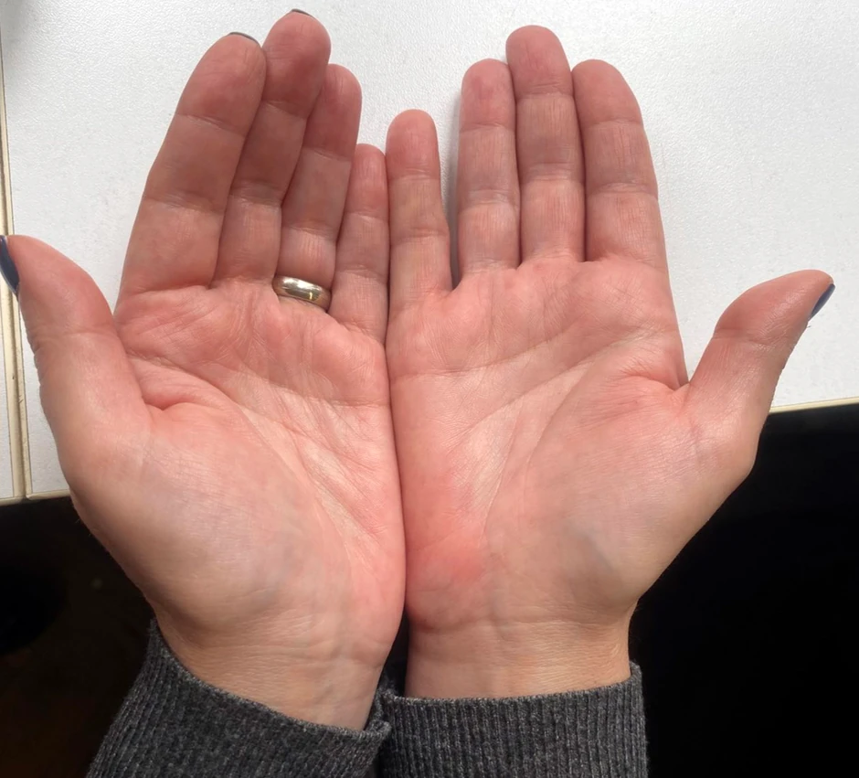 Palmarna eritema se obično javlja kod oboljenja jetre, ali može da bude i znak dijabetesa, bolesti pluća ili raka