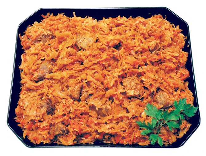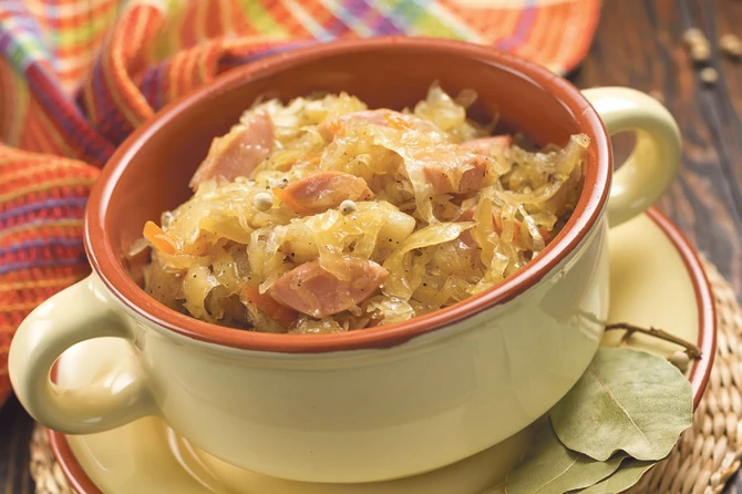 500 g svinjskog mesa, 500 g junećeg mesa, 300 g suvih rebara, 300 g suve slanine, 2 glavice kiselog kupusa, 1 suva svinjska nogica, 10 zrna bibera, 4 lista lorbera, 2 glavice crnog luka, 2 suve crvene paprike, 2 kašičice mlevene paprike.