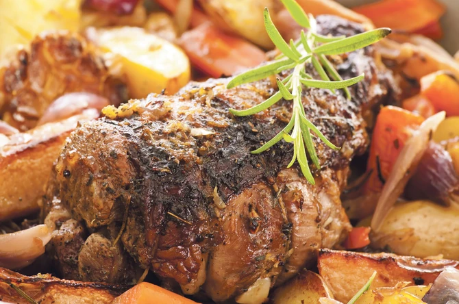 Stari hleb namočite u mleko. Na ulju propržite seckani luk i mlevenu piletinu. Posolite i umešajte rendani oraščić, jaja, seckani peršun i oceđeni hleb. Sve dobro izmešajte. Izvadite rebra iz jagnjećih prsa i odstranite masnoću. Posolite po celoj površini i napunite nadevom. Savite u rolat, povežite kuhinjskim koncem, malo dosolite i natrljajte majoranom. Stavite na vrelo ulje, pa pecite u rerni oko 75 minuta, često prelivajući meso sokom koje je pustilo i dolivajući toplu vodu. Pečenom mesu skinite konac, malo ohladite i secite na kriške, pa poslužite uz pečeni krompir.