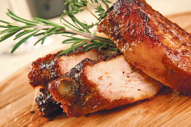 2 kg svinjskih rebaraca, glavica luka, 2 kašike svinjske masti, 4 kašike kečapa, 3 kašike vočester sosa, 2 kašike sirćeta, 4 kašike limunovog soka, 2 kašike šećera, 2 kašičice senfa, kašičica sušenog bosiljka, pola kašičice čilija, kašičica soli, pola čašičice bibera