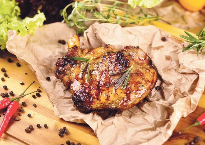 Kotlete pospite suvim začinom, posolite i pospite brašnom. Na zagrejano ulje stavite iseckanu ljutu papričicu, spustite meso i ispecite dobro sa obe strane. Zatim dodajte masline, origano, ruzmarin i sok od limuna. Ostavite na srednjoj vatri još tri, četiri minuta. Poslužite uz dinstano povrće ili pirinač.