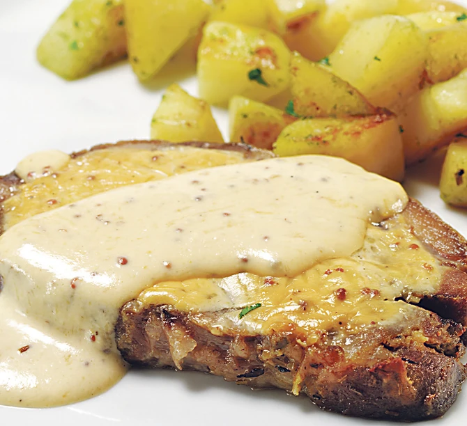JUNEĆE ŠNICLE SA SENFOM I VINOM